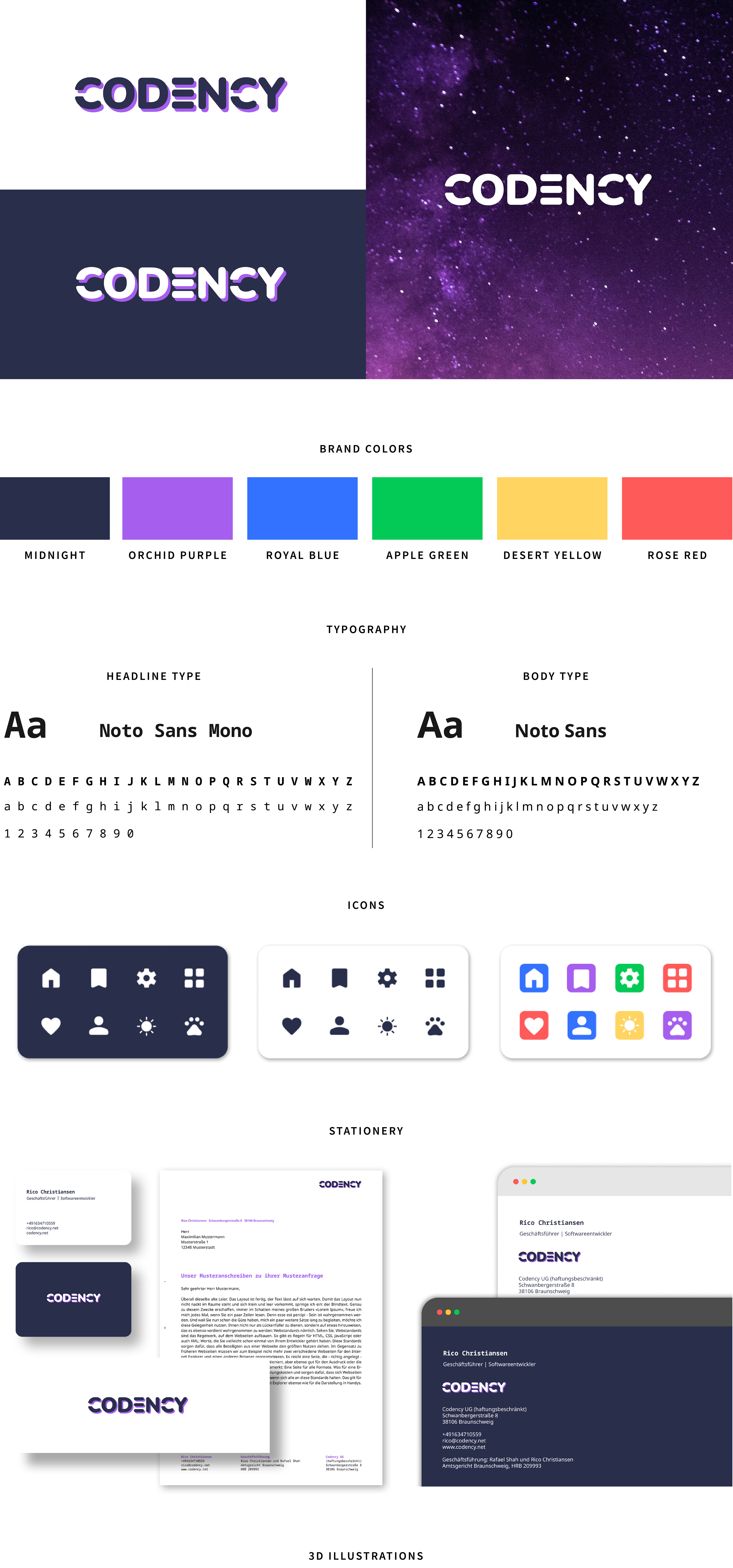 I created a design system for the software startup Codency. It consists of the elements: logo, typography, colors, icons, 3D illustrations and web design. visit codency.net